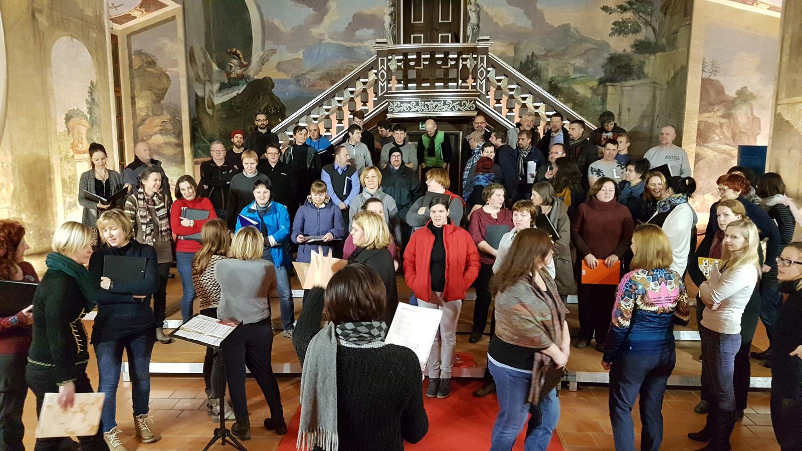 Veseli december, ponovni šok. Zopet smo se sedanji in predvsem nekdanji srečali na pogrebu, tokrat našega Andreja Založnika, ki je Vivino basovsko linijo bogatil v preteklosti. »No, to je pa za letos dovolj«, smo si govorili, »naslednjič se res moramo srečati ob kakšnem bolj veselem dogodku.« In ko se je leto prevesilo v novo rojstvo, smo že imeli svežo zamisel. V čast našima pevcema bomo zapeli vsi skupaj, sedanji in nekdanji viveki. Velike zasluge gredo zborovodkinji Simoni, saj je od pobude do izvedbe vseskozi prepletala vaje z nami, aktivnimi pevci, in tistimi, ki so peli nekoč, nekateri tudi že pred več kot dvajsetimi leti.